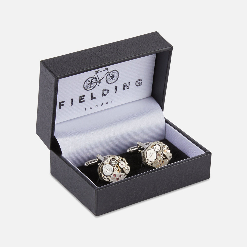 Handmade in the artisan workshop we collaborate closely with on the Brighton coast, The Heritage Ticker Pair is crafted from original Swiss watch movements dating from the 1920s to the 1950s. This particular geometric, six-sided form is especially scarce, making each pair a rare find. Restored by hand to reveal the fine gears and original rubis jewels, and backed in vintage leather, these distinctive components of old-world horology are reimagined as understated, contemporary cufflinks.