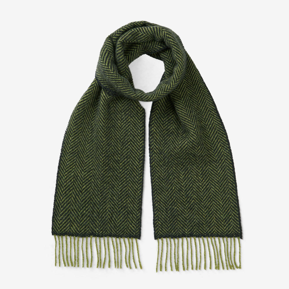 Wrap yourself in timeless luxury with the Norland Scarf in a timeless grey/pale green colour. Expertly crafted in Ireland from a premium blend of 95% Merino wool and 5% Cashmere.