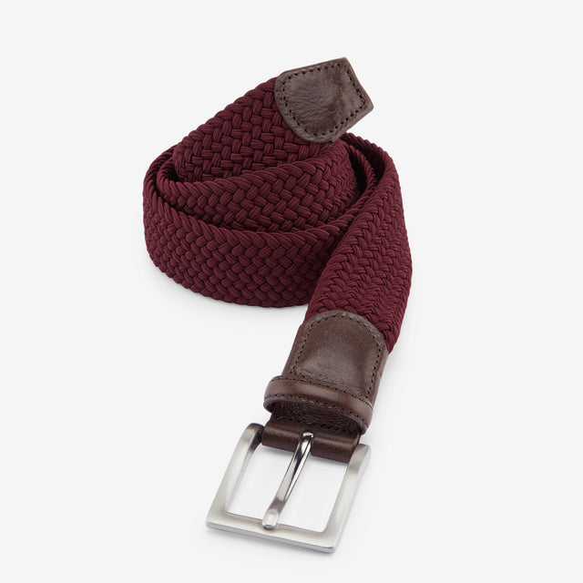 Add a touch of sophistication to your wardrobe with this classic woven belt in the colour of the season - Burgundy.