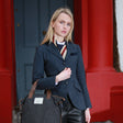 The Portobello jacket in dark blue herringbone brings classic sophistication to the forefront. Expertly tailored in London from premium British wool tweed, it captures the essence of traditional menswear-inspired tailoring while maintaining a distinctly feminine edge.